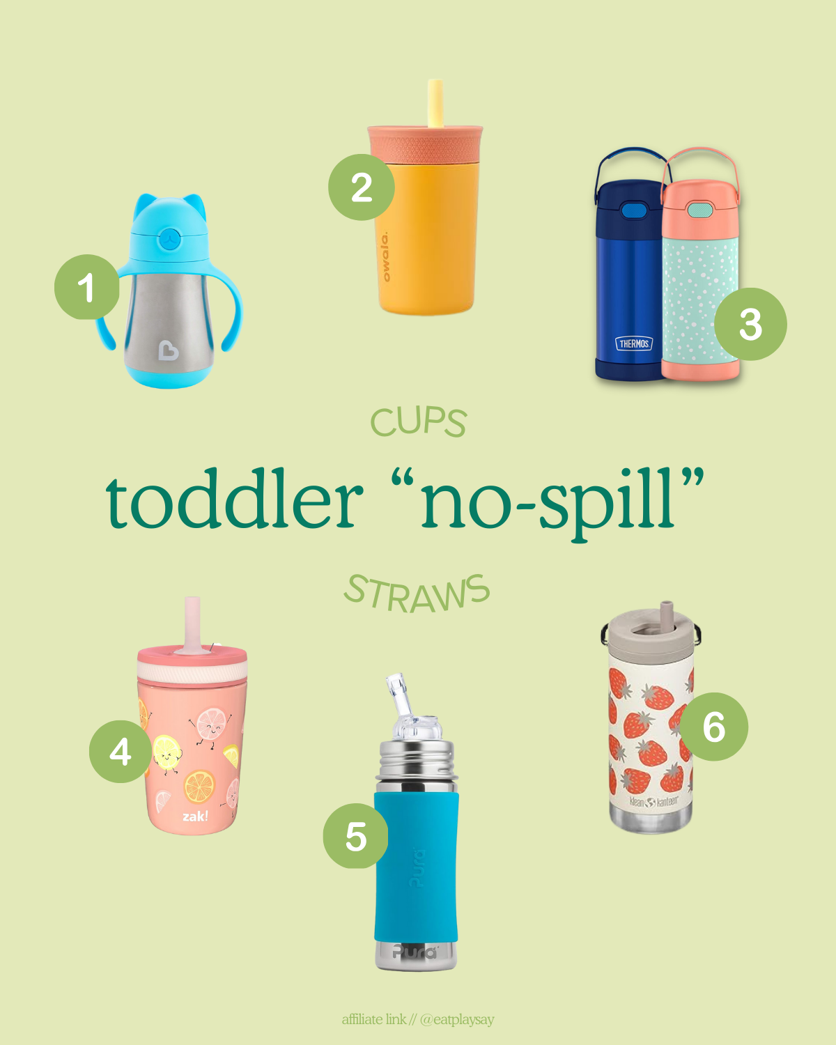 - Grosmimi 10 oz. Spill-Proof Cup: Identical to its smaller counterpart, this spill-proof straw cup has a small valve in the straw that should not impact oral development. As your toddler grows and starts drinking more, this 10 ounce option works well!