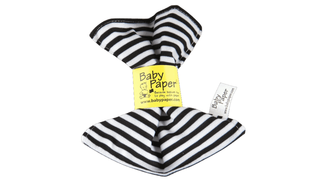 This baby paper makes a perfect high-contrast toy for babies. It’s soft and lightweight, yet produces an engaging crinkle sound when handled.