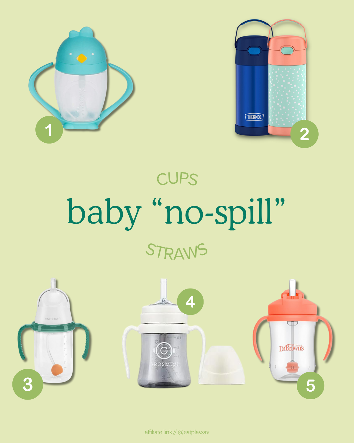 The Dr. Brown’s Milestones Cup: This is NOT my favorite cup for baby, but it’s a very cost effective option, so I like to include it. It has a valve under the lid, so making sure that the straw is not too tightly suctioned to the lid is key! If the lid is pulled through the top too tightly, it is very hard to suck from, so try to loosen if you’re noticing that it’s hard! It’s pretty spill-proof and for only $6 it’s a decent choice! I’d use for about 6 months and older.
